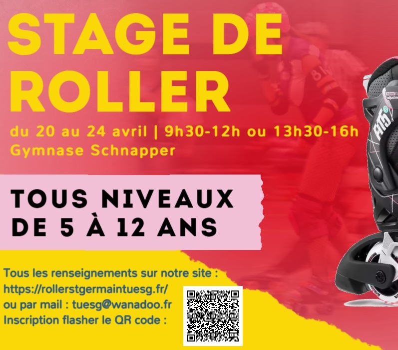 Nous avons le plaisir de vous annoncer l’organisation d’un stage de roller destiné aux enfants de 5 à 12 ans, qui se déroulera du 20 au 24 avril 2026 au gymnase Schnapper à Saint-Germain-en-Laye.